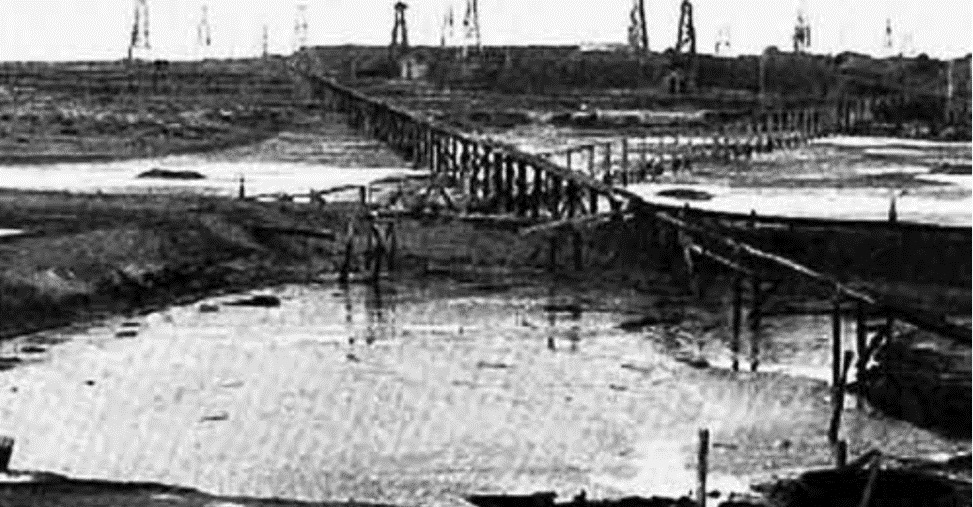 Первый в России нефтепровод Балаханы-Чёрный город, построенный по заказу «Товарищества нефтяного производства братьев Нобель» по проекту и под техническим руководством инженера Владимира Шухова.