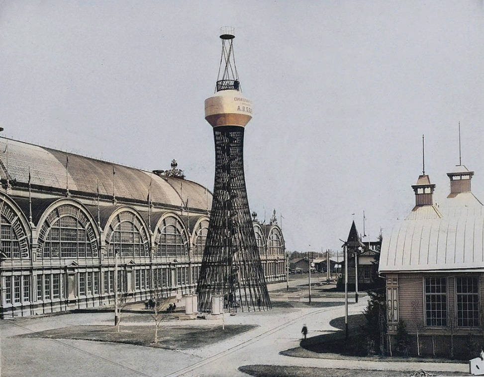 В 1896 г. в Нижнем Новгороде была торжественно открыта XVI Всероссийская промышленная и художественная выставка, самая большая за всю дореволюционную историю всероссийских смотров промышленных достижений. А её визитной карточкой стали сетчатые гиперболоидные конструкции инженера Владимира Шухова, изобретенные им в 1890-х и запатентованные им же в январе того же 1896 г.